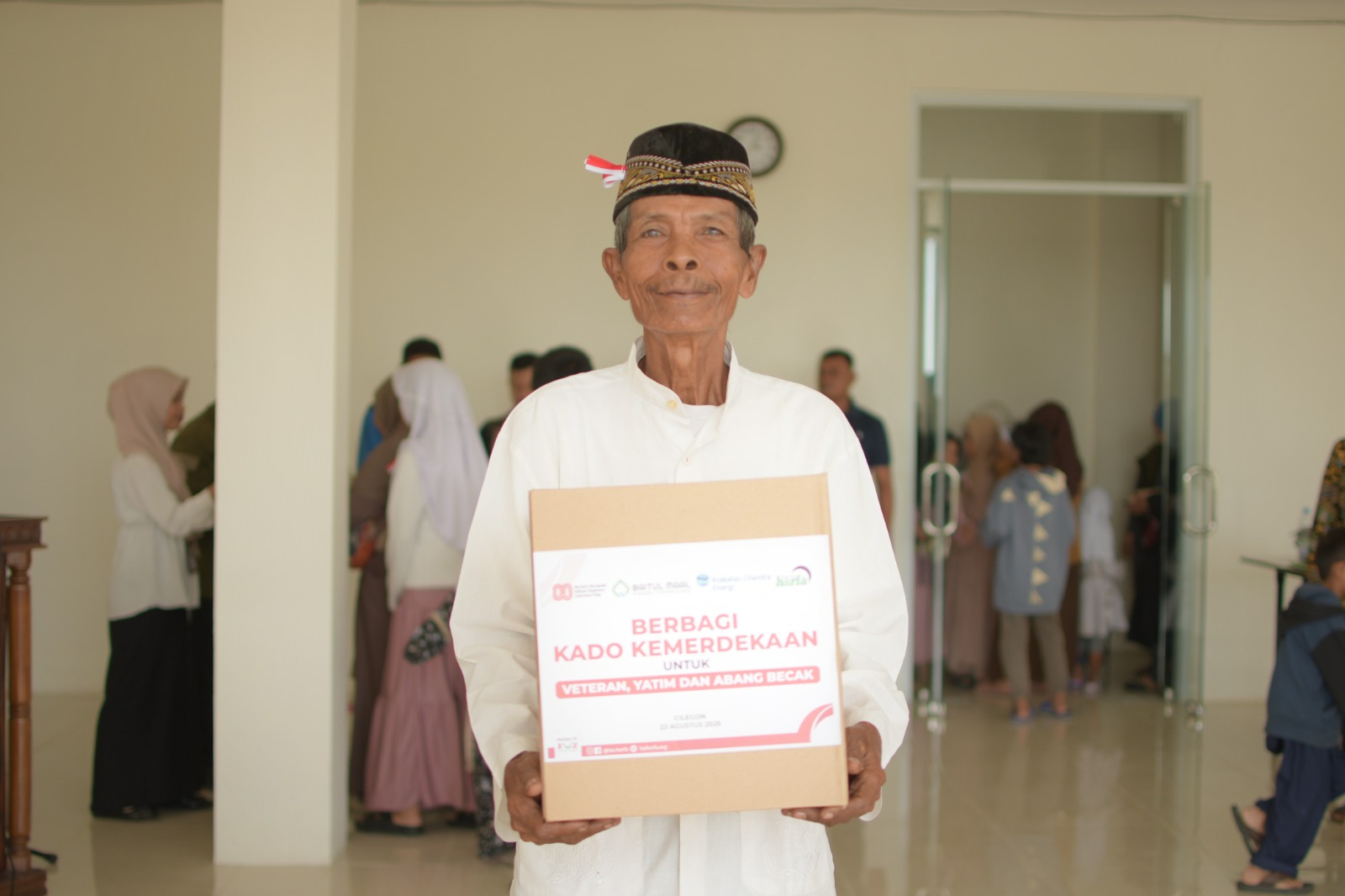 Dalam rangka memperingati Hari Kemerdekaan Republik Indonesia yang ke 80 Tahun, LAZ Harfa bersama Krakatau Chandra Energi (KCE) dan Baitul Maal KCE menggelar kegiatan sosial bertajuk Berbagi kado kemerdekaan untuk veteran, abang becak, serta anak yatim dhuafa, di Kantor Dinas Sosial Kota Cilagon, Sabtu (23/08/25).